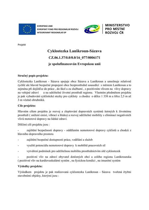 Úvod > Projekty > Projekt > Cyklostezka Lanškroun - Sázava